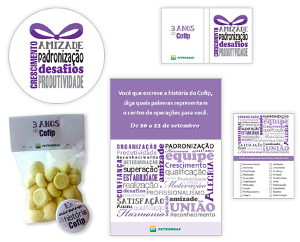 COMMENTS Visual Identity, notebook, signage, packaging, banner and ballot for 3rd Anniversary of Cofip Building.